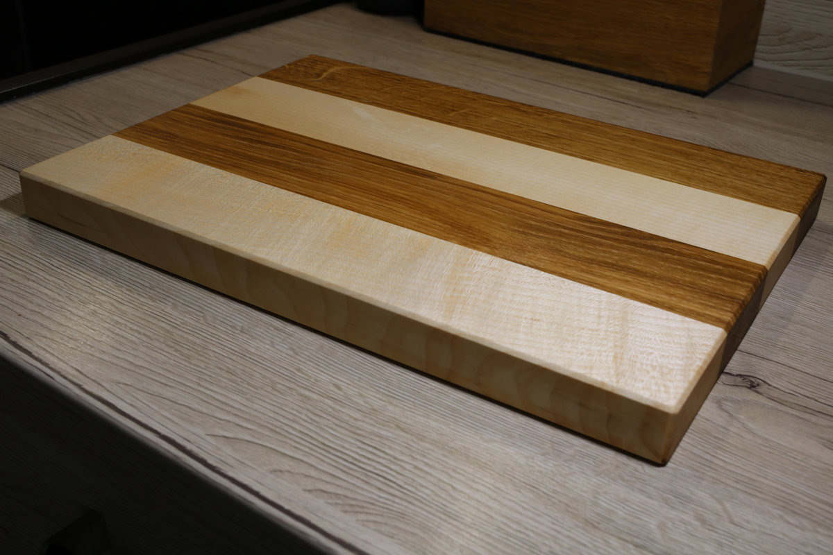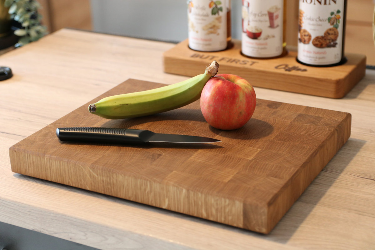 Behandelt wird das Schneidebrett mit dem lebensmittelechten Schneidebrettöl von HeliaCare.