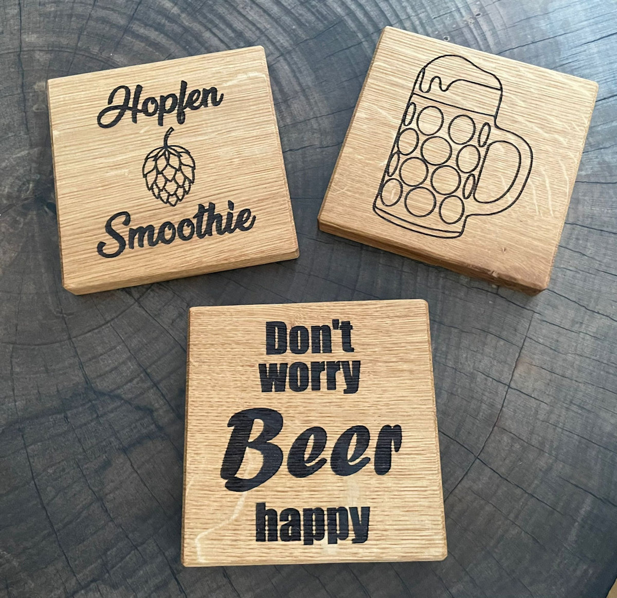 Diese handgefertigten Untersetzer sind in Eiche und Ahorn erhältlich.