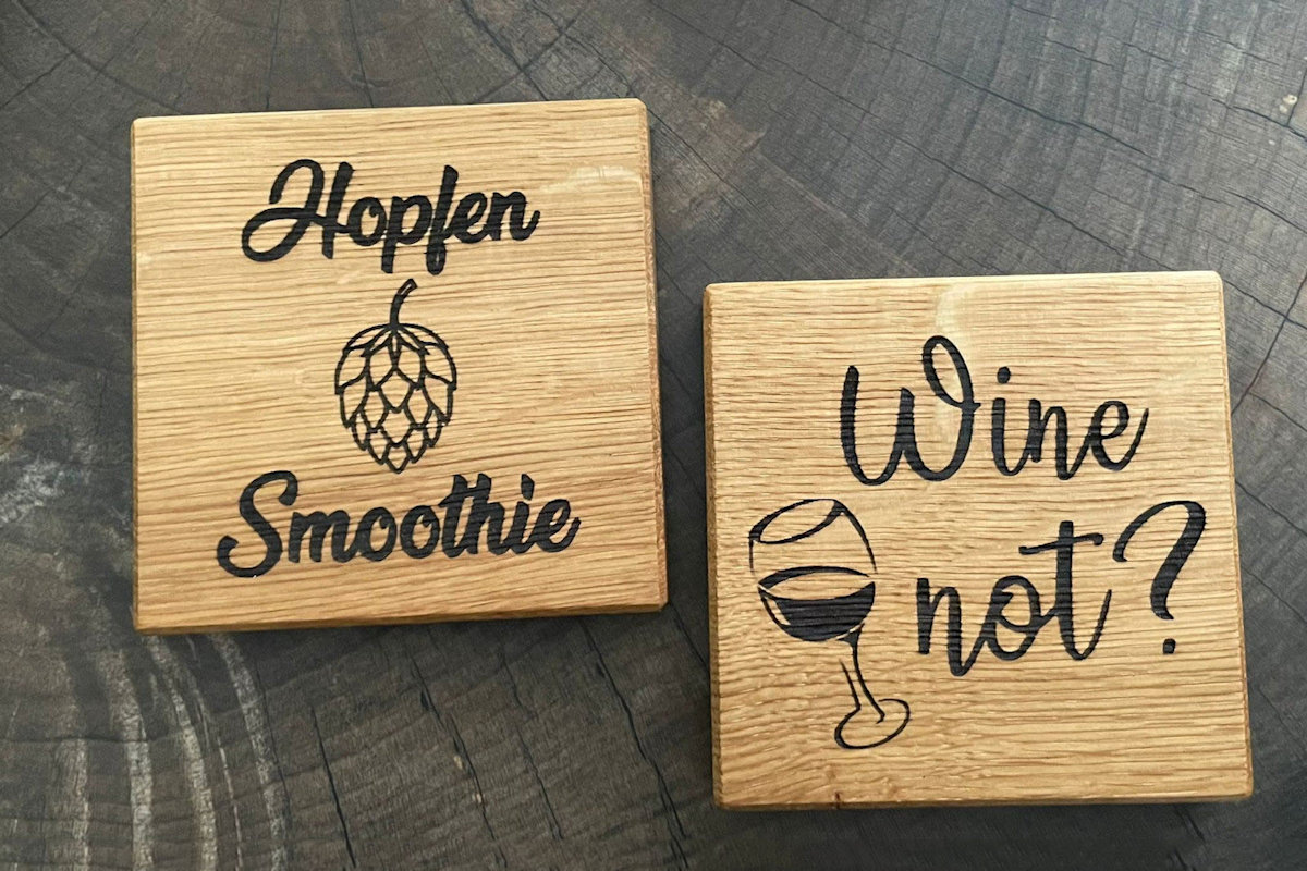 Die Untersetzer sind mit dem lebensmittelechten Öl von HeliaCare behandelt,